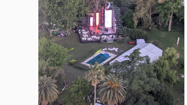 Hasta ese lugar en La Plata llegaron los policías de la Provincia de Buenos Aires. Sobrevolaron el predio en helicóptero, desde donde se pudo ver un gran escenario montado sobre el césped, una pileta de varios metros, una carpa para alojar invitados y luces, todo rodeado de árboles.