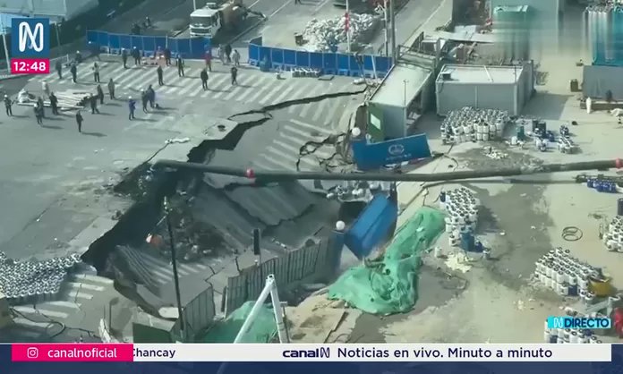 Las imágenes muestran el instante en el que el asfalto cedió de manera repentina mientras operarios trabajaban en el lugar, que estaba cerrado al tránsito vehicular. Los trabajadores huyeron para ponerse a salvo cuando el suelo se abrió y levantó una nube de polvo.